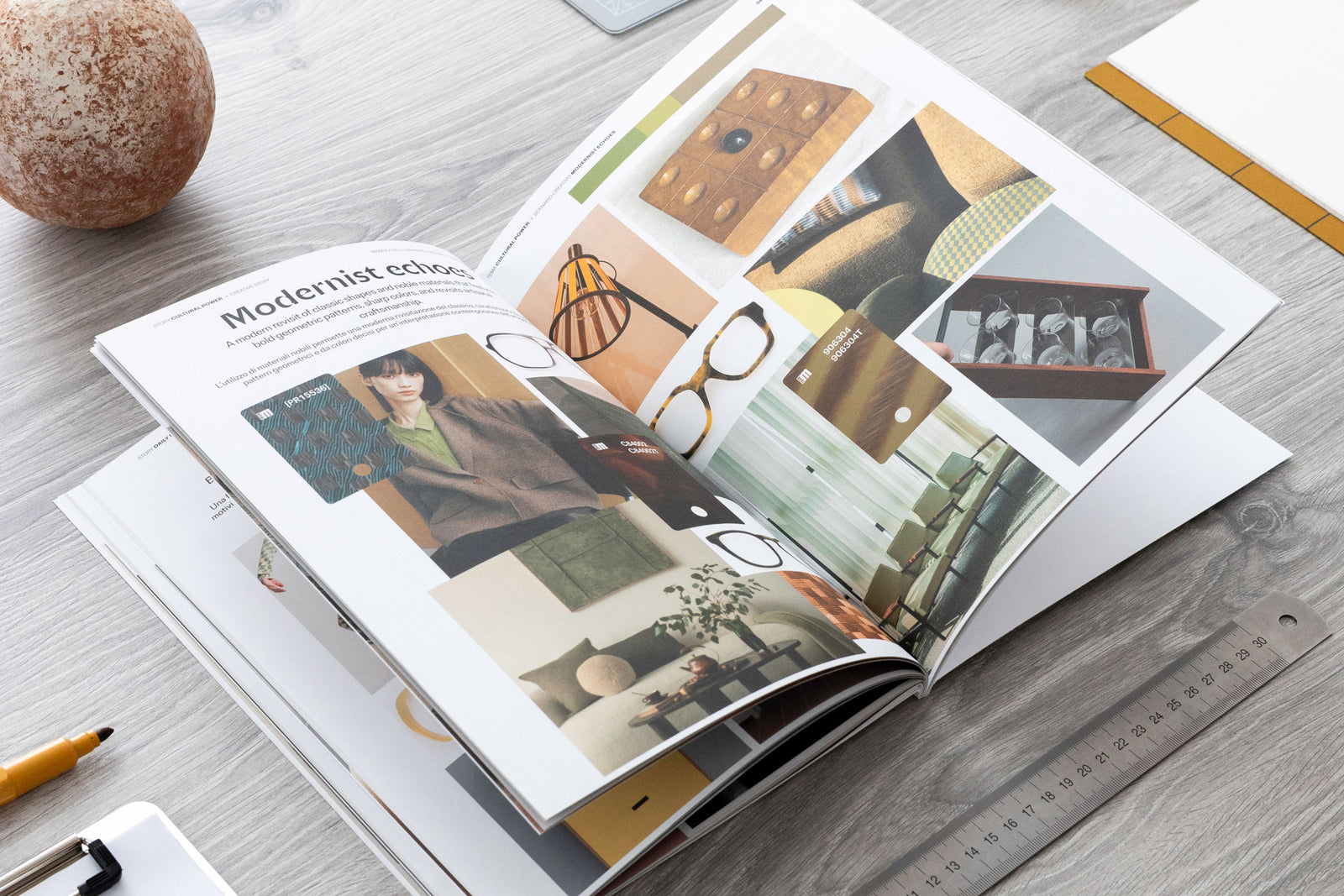 The Trend Book is organized into four main themes, each divided into three scenarios, with Mazzucchelli materials at the core of the research, selected from the current catalogue, new collections and archival references. The digital format enables direct navigation within the Mazzucchelli website, providing access to technical data and product insights.